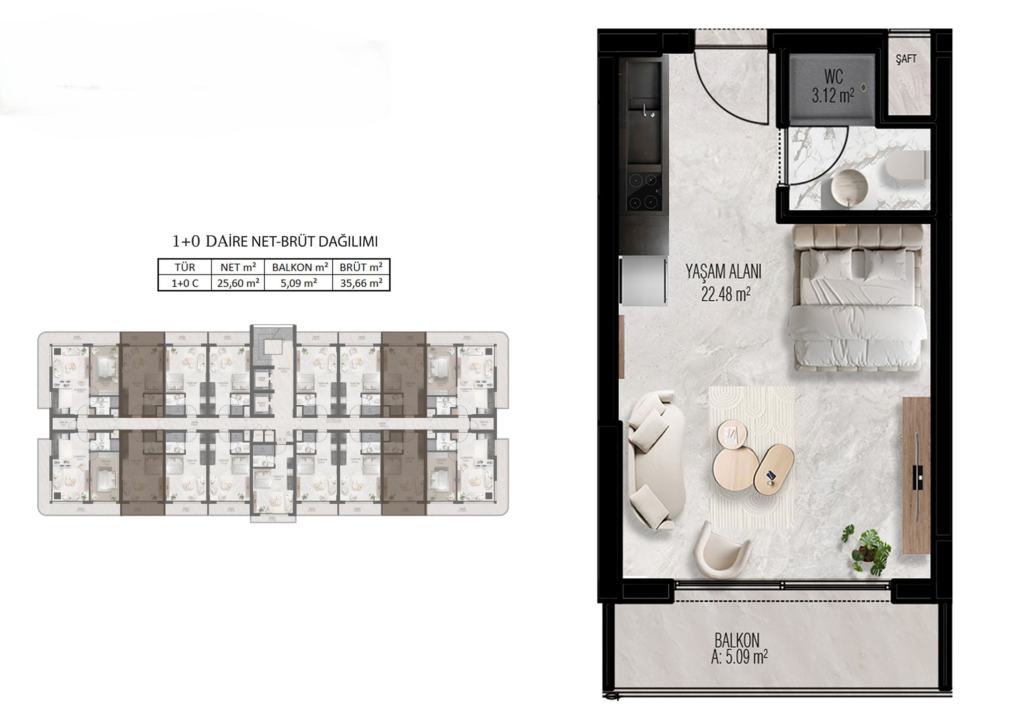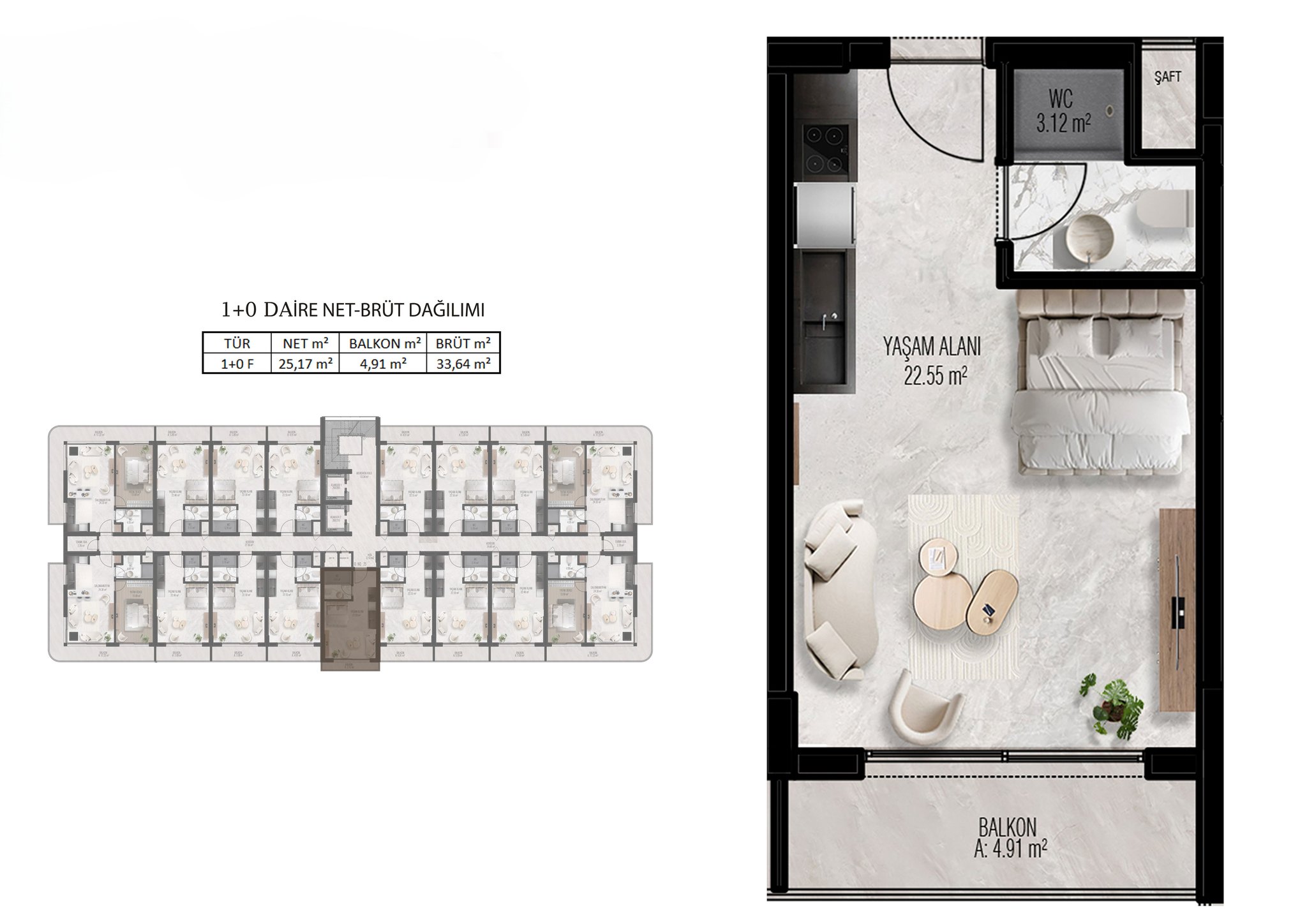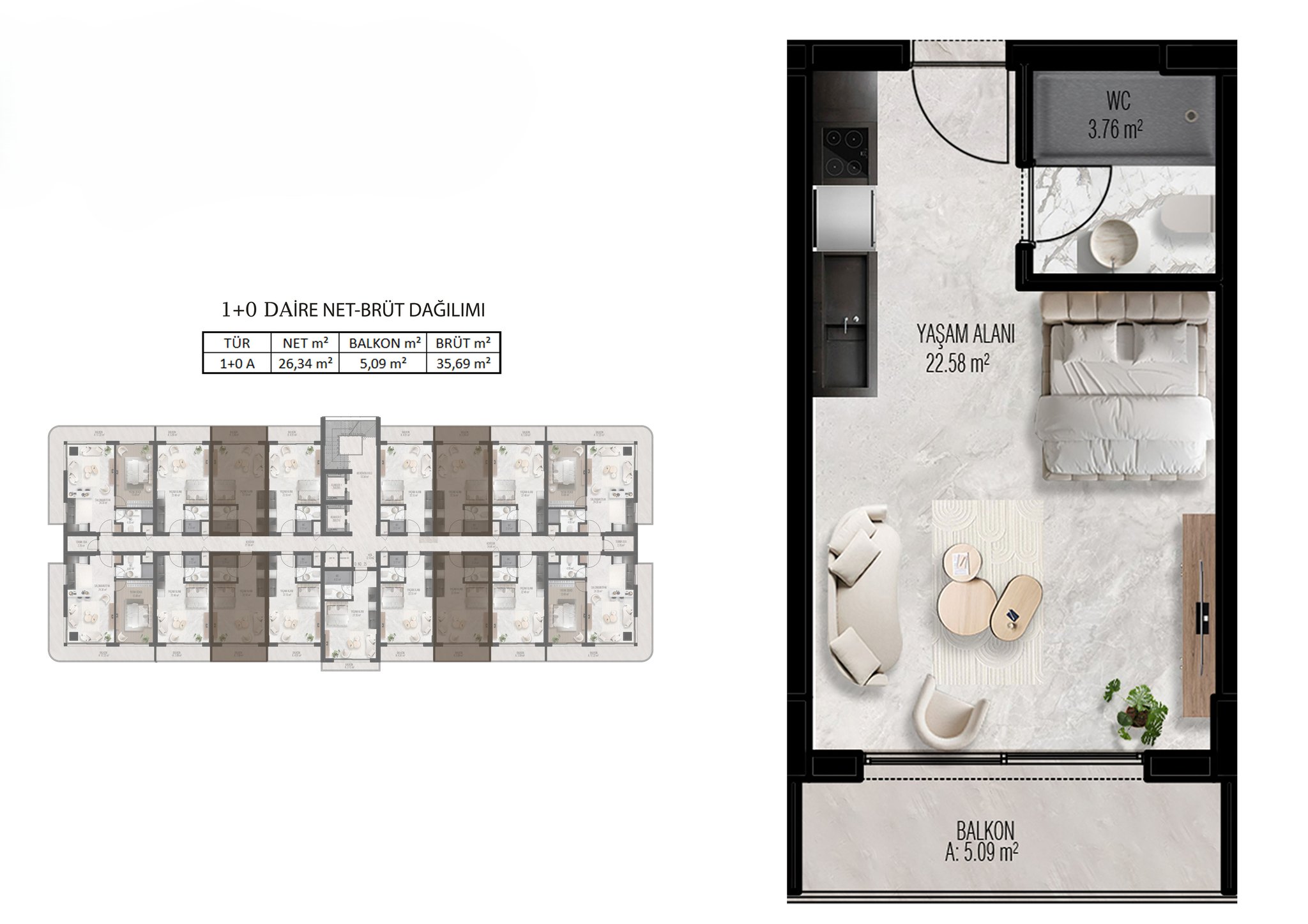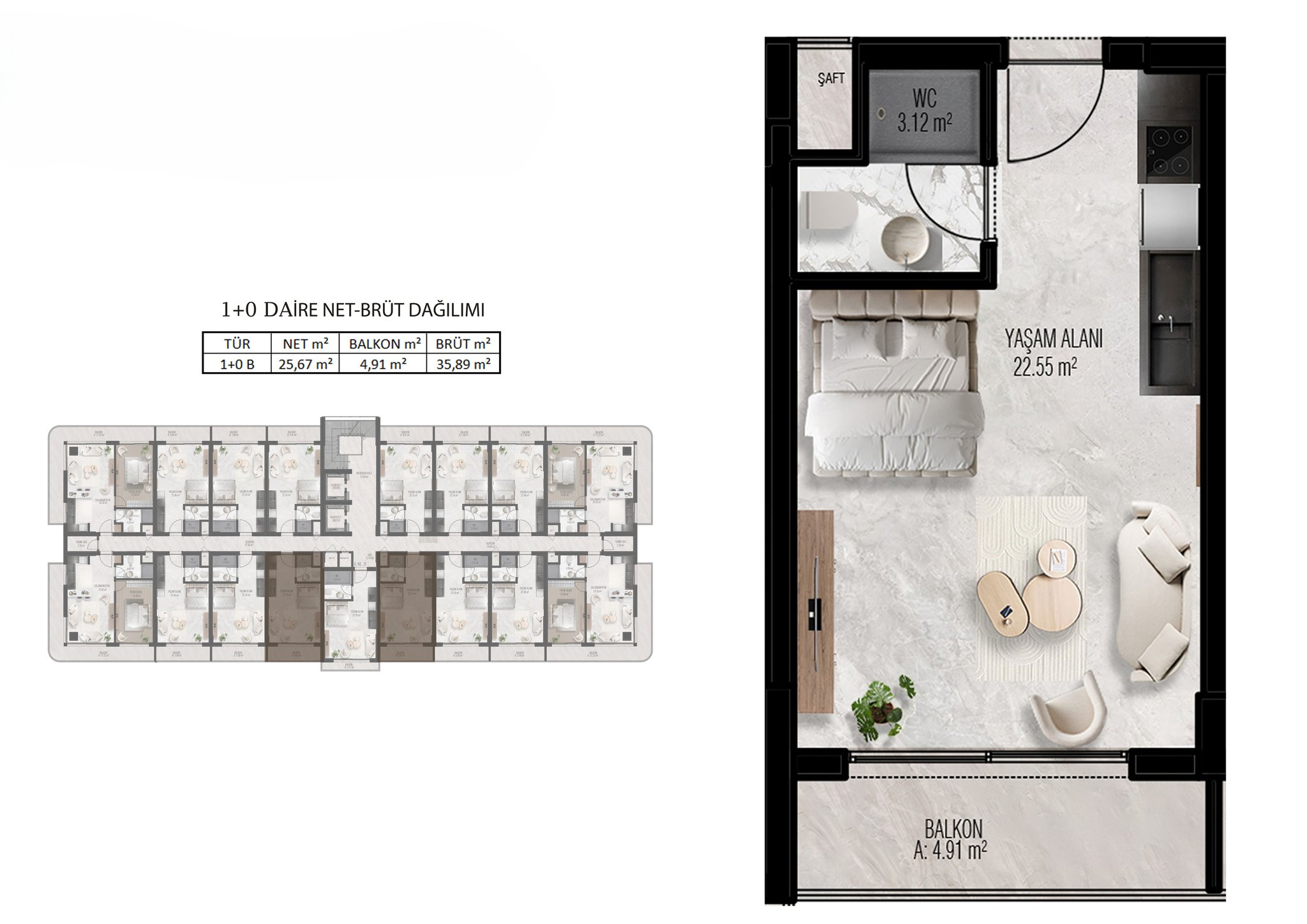 Exclusive Community: Only 270 residential units across two blocks, featuring studios and 1-bedroom apartments.