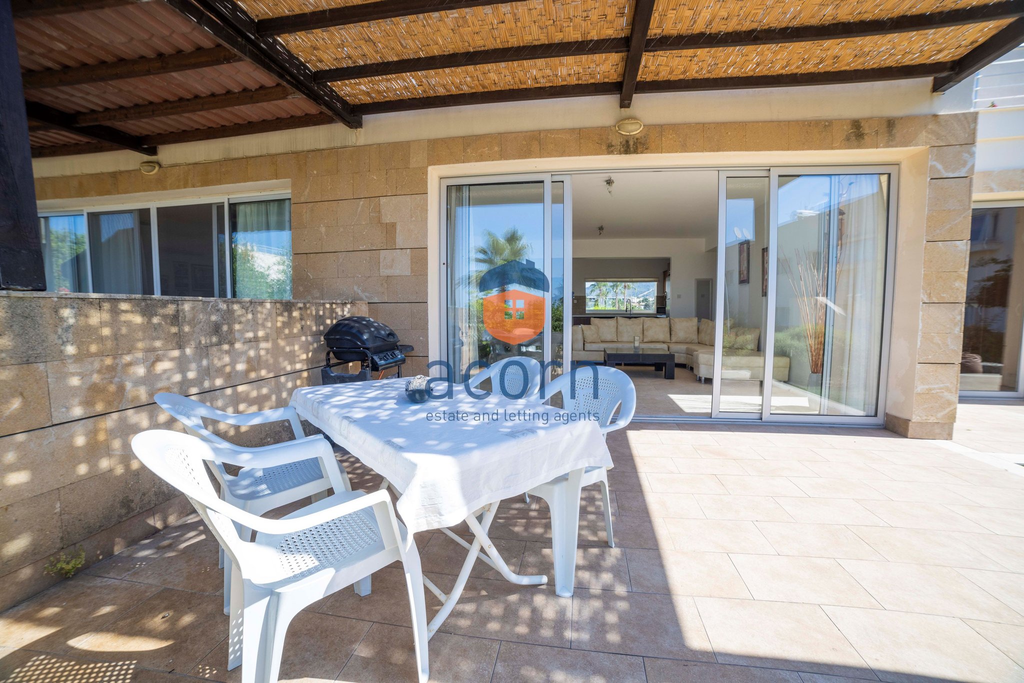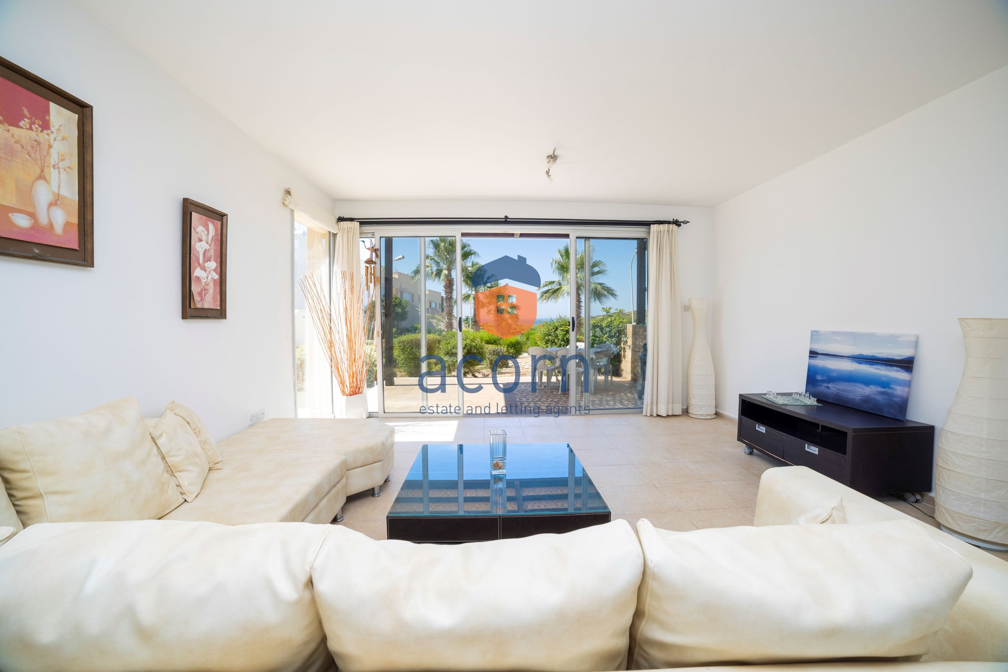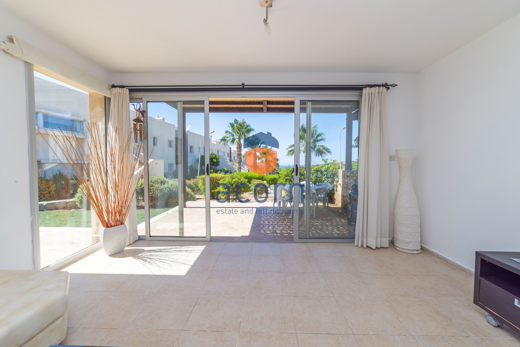 This 3 bedroom, 2 bathroom garden apartment is situated on Sea Terra Bay complex which is frontline, gated, has 3 communal swimming pools, children’s pools, children’s playground, gym, sauna and there is even a lovely private cove adjacent to the site. The apartment is spacious and light and has air conditioning throughout; the kitchen comes with white goods and the living/dining area has sliding doors to the covered terrace. All 3 bedrooms have fitted wardrobes, two have sliding doors leading to the garden (which is astro-turfed) and the master has an ensuite bathroom. The garden is a great size and just perfect for a dining table and summer sofas, taking in those wonderful sea and lush garden views. You have plenty of great bars and restaurants just a few minutes drive away, including Double Gemini, Eagles Nest, Down the Hill, Roots Bar and many more. The individual title deed is ready for transfer with no VAT to pay, so a perfect holiday home or indeed, a great investment property. Dream Big, the Acorn does!