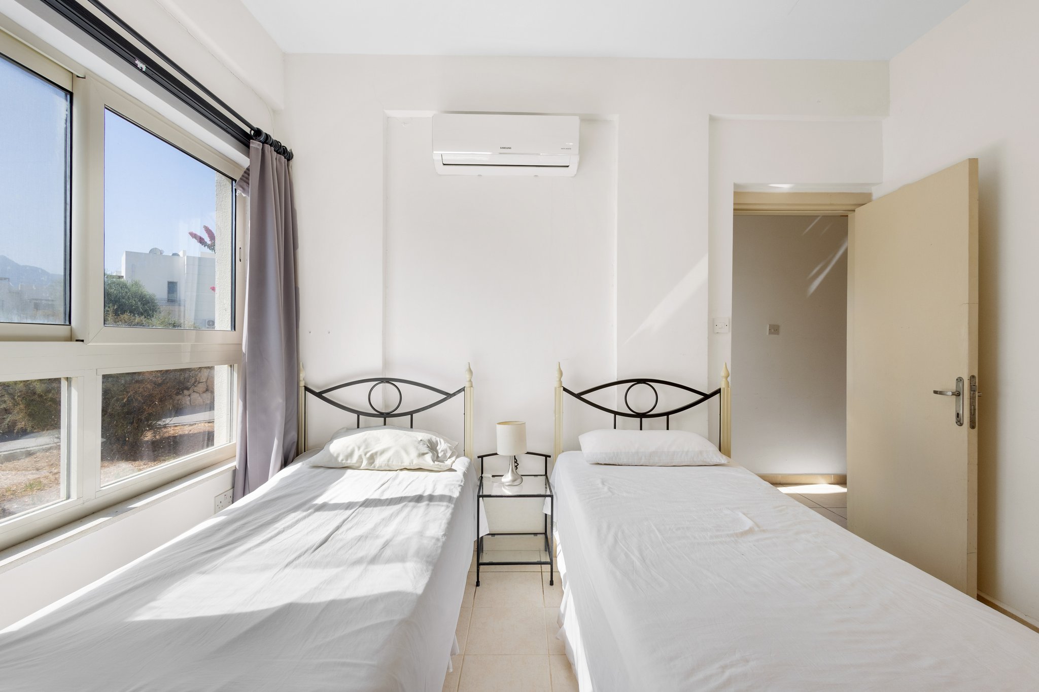 Set in the popular Turtle Bay Village, this bright and spacious 3-bedroom ground floor apartment offers relaxed coastal living just steps away from the Mediterranean Sea. The property is well-presented, clean, and move-in ready, with generous indoor and outdoor spaces that make it ideal for year-round living, holiday use, or as a rental investment. The open-plan living and dining area is filled with natural light and connects directly to a private covered terrace, where you can enjoy beautiful sea views and peaceful garden surroundings. A modern fitted kitchen comes fully equipped with white goods, while the comfortable lounge area opens to the terrace through wide sliding doors — perfect for indoor-outdoor living. The apartment includes three bedrooms, all with fitted wardrobes, ceiling fans, and air conditioning for year-round comfort. The master bedroom benefits from direct access to the terrace and views of the garden and sea, while the guest bedrooms are equally spacious and bright. A family bathroom with a walk-in shower completes the interior. Outside, the private terrace is the highlight of this property — a shaded space framed by greenery, with uninterrupted views across the natural landscape to the Mediterranean. The sea is just a short stroll away along landscaped paths, making it easy to enjoy morning swims, evening walks, or simply the sound of the waves from your terrace.