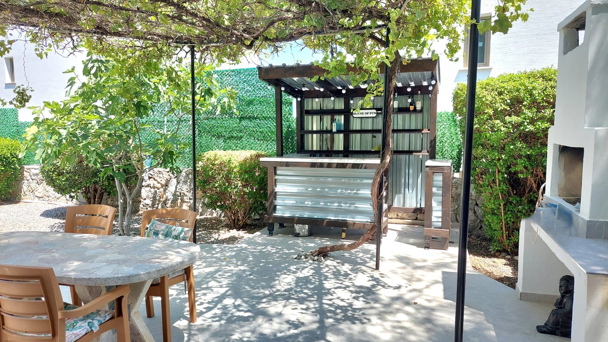 The mature garden is over 600m2, providing a lush, private oasis. It includes a charming pergola draped with grapevines, a fantastic bar area, and a variety of mature fruit trees, including olive, fig, lemon, and orange. Recently terraced for easy maintenance, the garden is the perfect setting for outdoor gatherings.