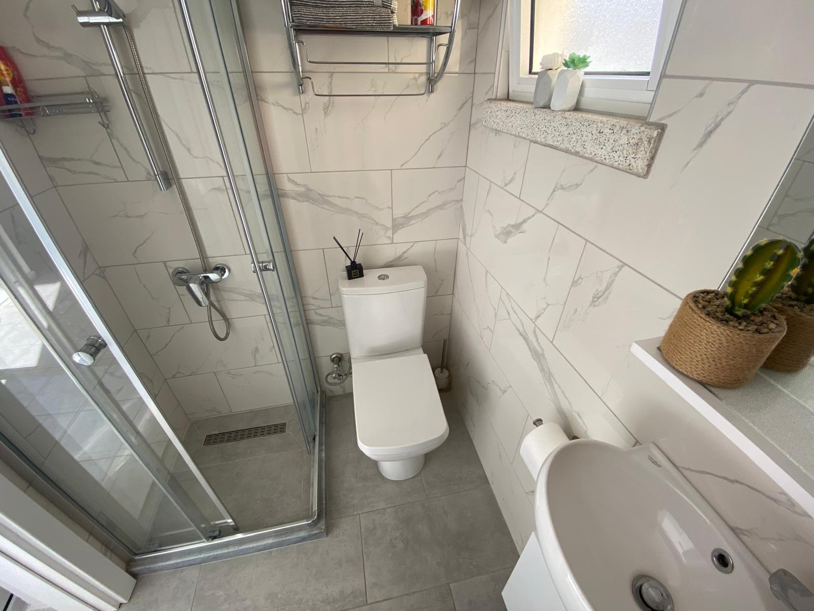 Upstairs, you will find three double bedrooms and the master bedroom boasts a private balcony with wonderful mountain and sea views, offering a tranquil retreat. The property also includes two modern, newly fitted bathrooms – one on each floor.