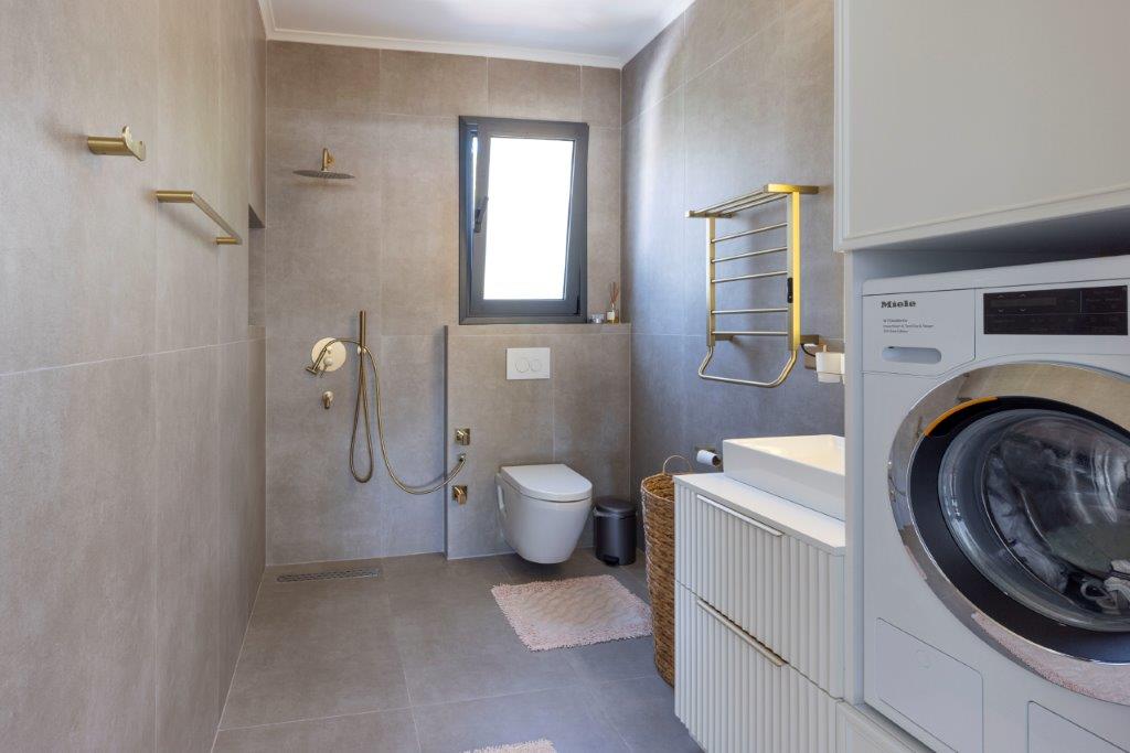 Offering 265 m² of covered living space plus 100 m² of balconies and terraces, the villa has been finished to the highest standards, with premium fixtures, fittings, lighting, curtains, fly screens, and white goods all included. The home is equipped with underfloor heating throughout powered by an energy-efficient heat pump, and benefits from freehold title deed eligibility suitable for all nationalities and bank loans.