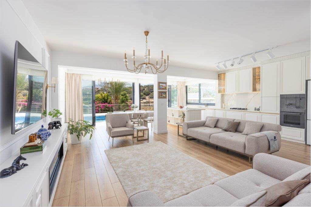 • Bright, spacious open-plan lounge, kitchen, and dining area leading directly to the pool terrace