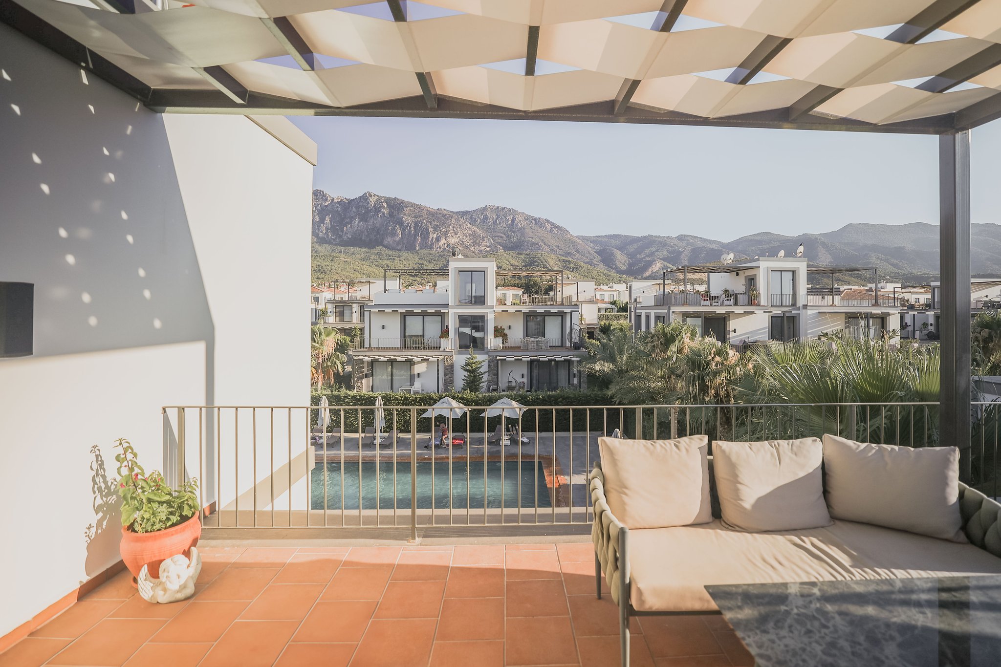 Discover this stunning penthouse in Alsancak, Kyrenia, exclusively listed by Acorn Estate. This luxurious apartment offers panoramic views of the sea and mountains, providing a serene and picturesque living experience.