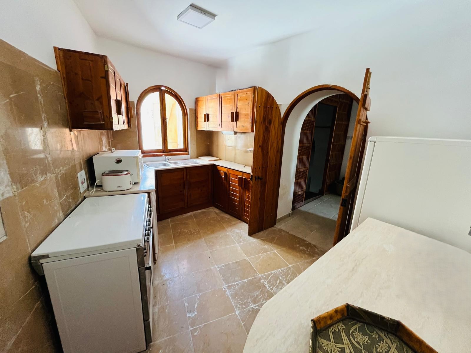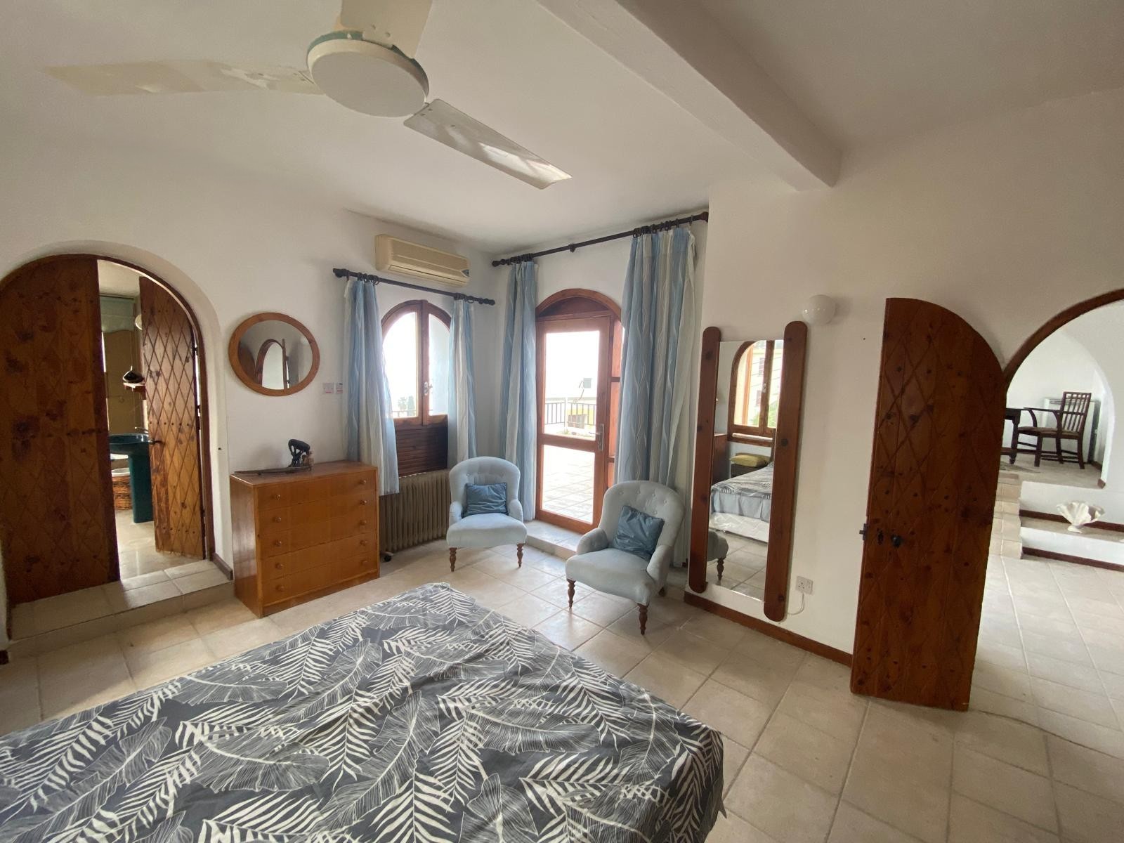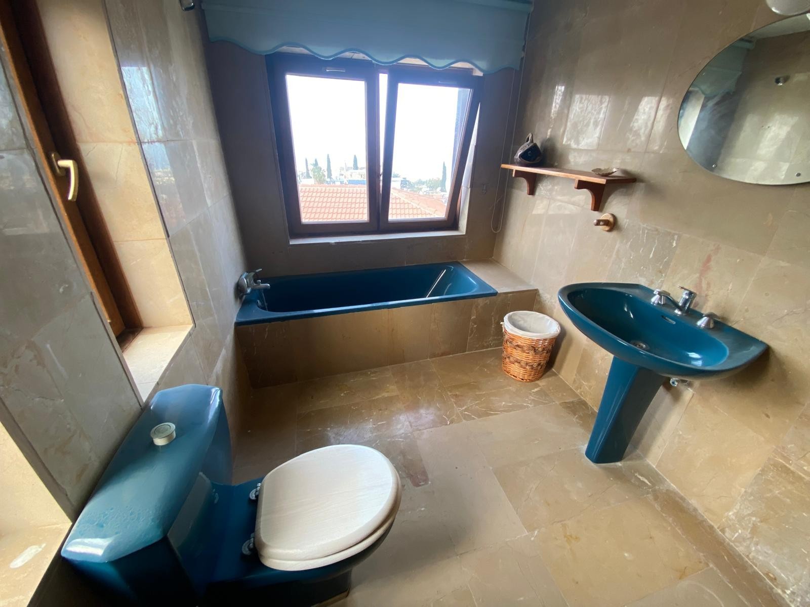 This upper level feels almost like a private apartment. A bright sitting room with log burner opens via patio doors onto the spacious roof terrace, where panoramic views stretch across Bellapais village, the abbey and towards the sea. To one side is an office/dining area — believed to be the very room where Durrell wrote portions of Bitter Lemons, perfectly positioned to overlook the village that inspired him.