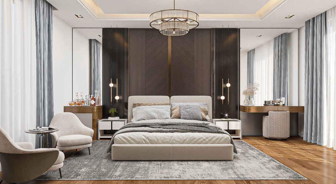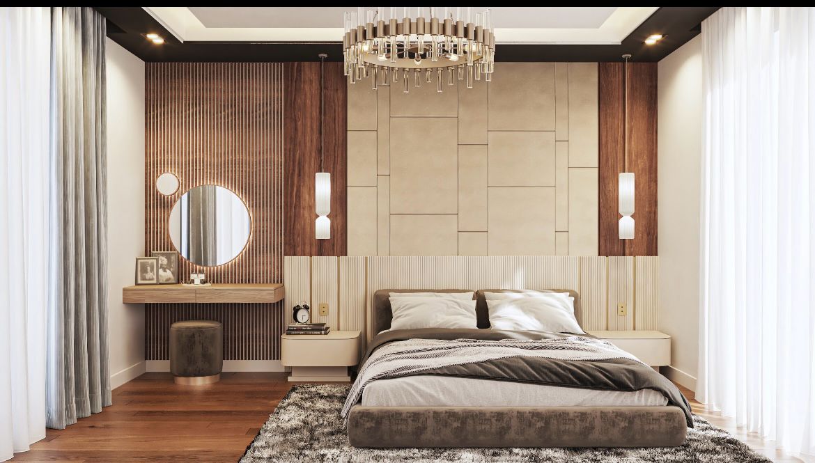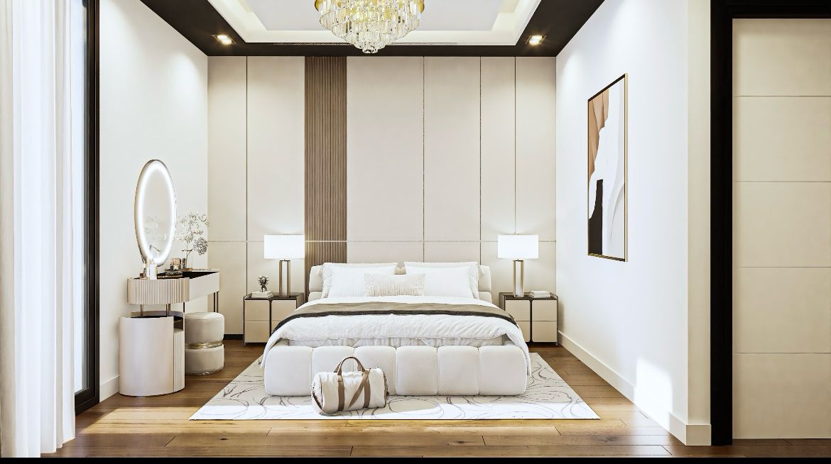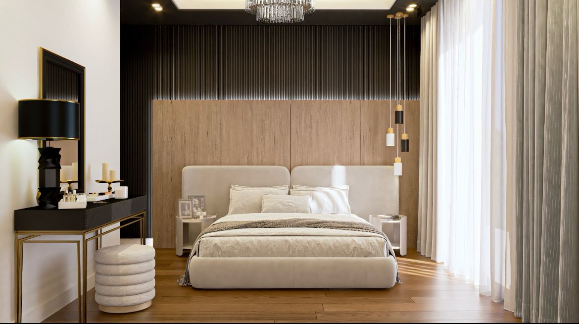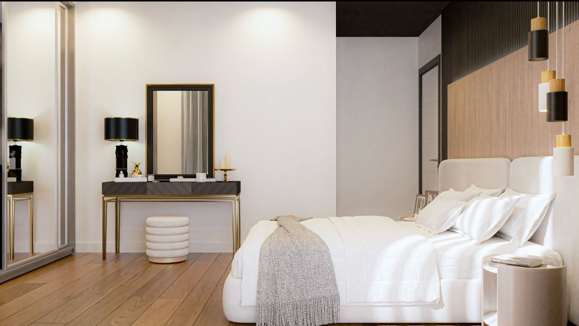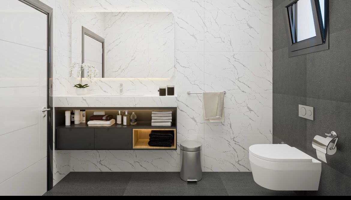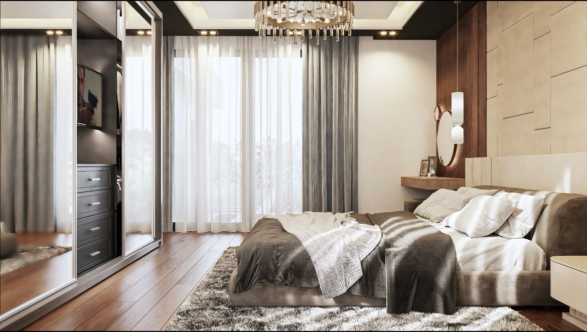 * In the master bedroom, the floors will be made of laminated parquet and the balcony floors will be ceramic, moreover, the dressing room cabinet will be parquet and also the en-suite wc bathroom floors and walls will be ceramic tiled