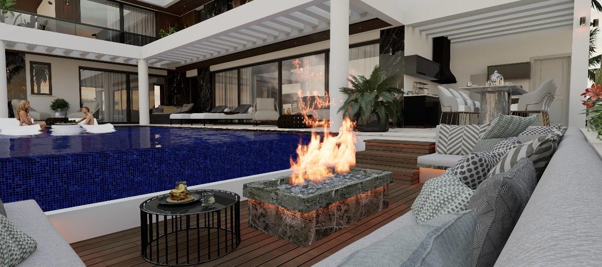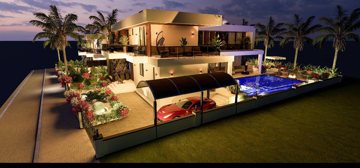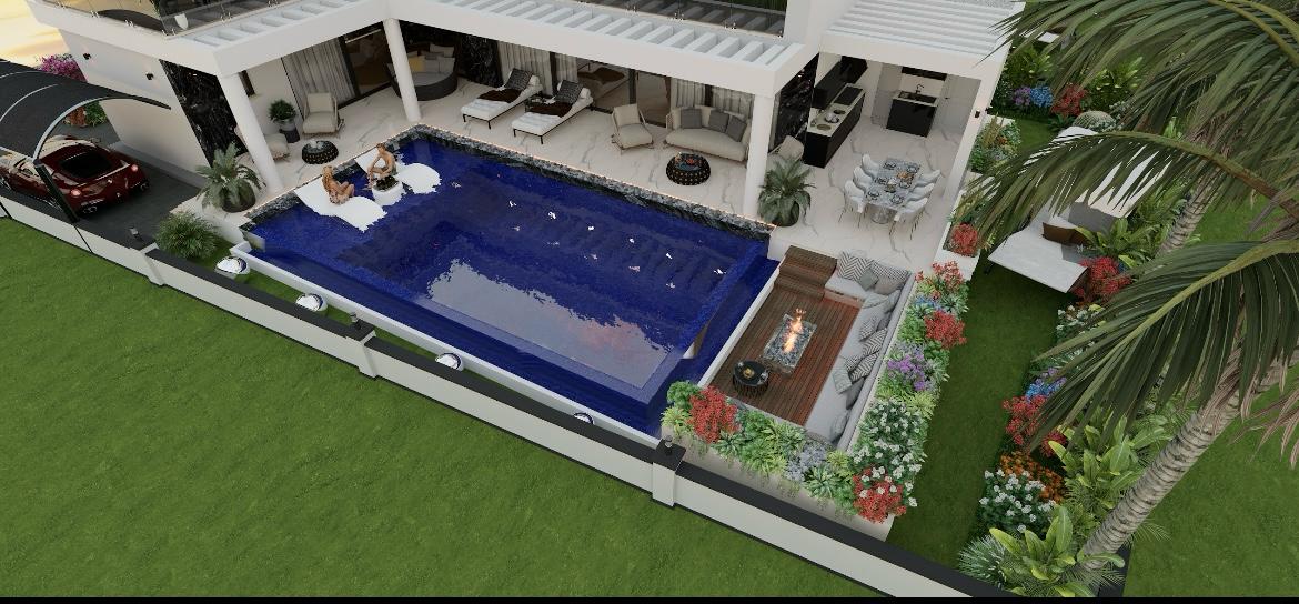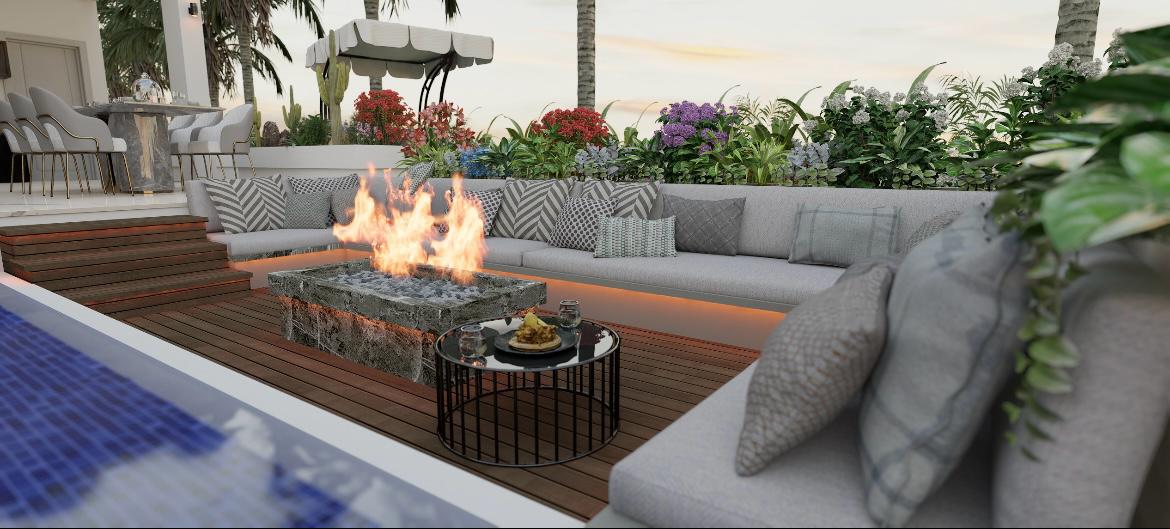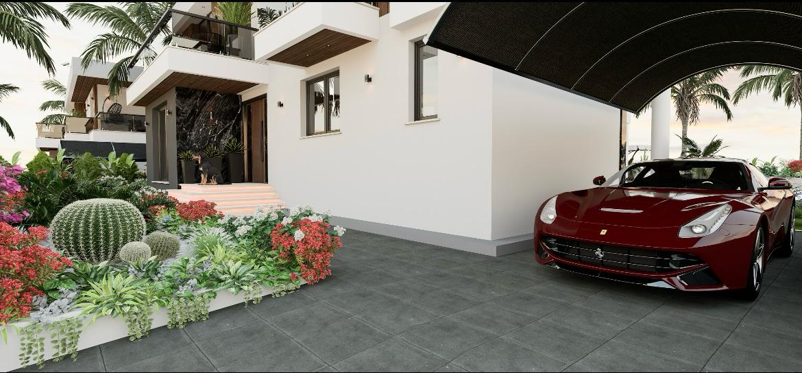 * Landscaped with an automatic irrigation system and all plants and flowering seen in 3ds in the project note: palm trees and portable fixtures in all images, seats, tables and similar flooring are excluded