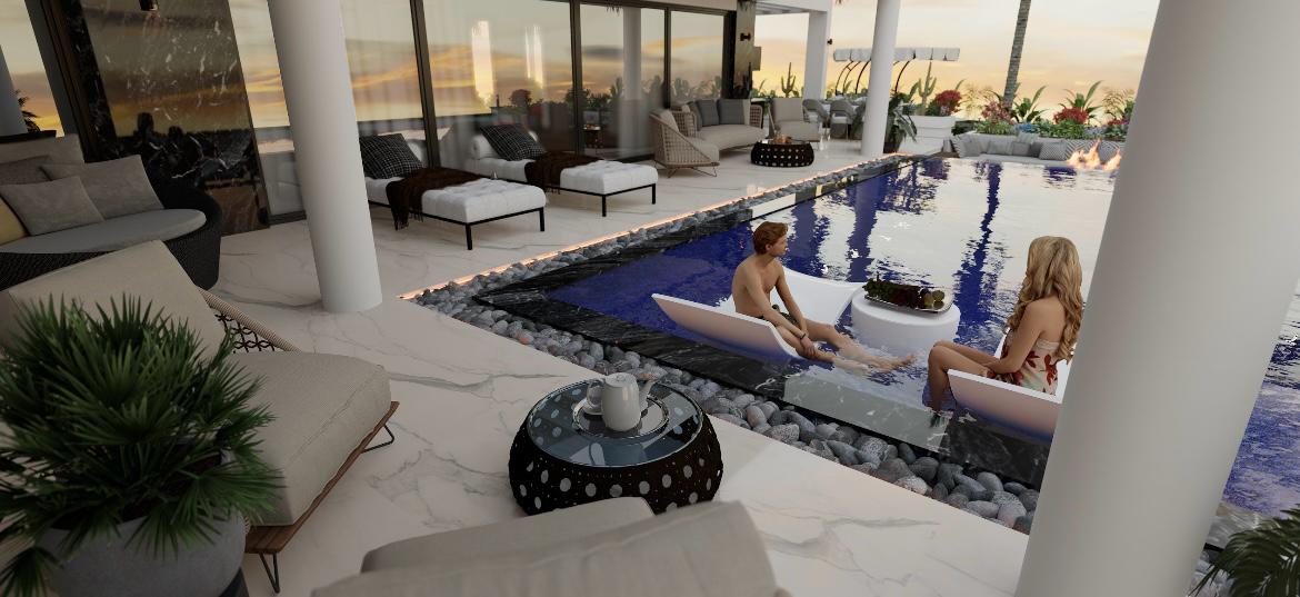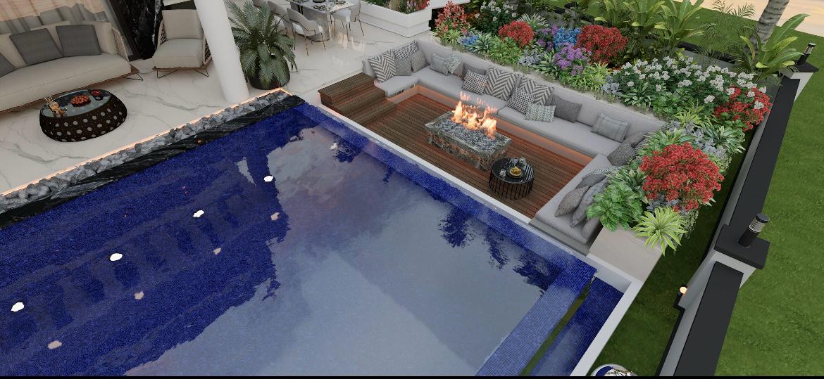 * A specially designed seating and enjoyment area will be built on the east side of the pool