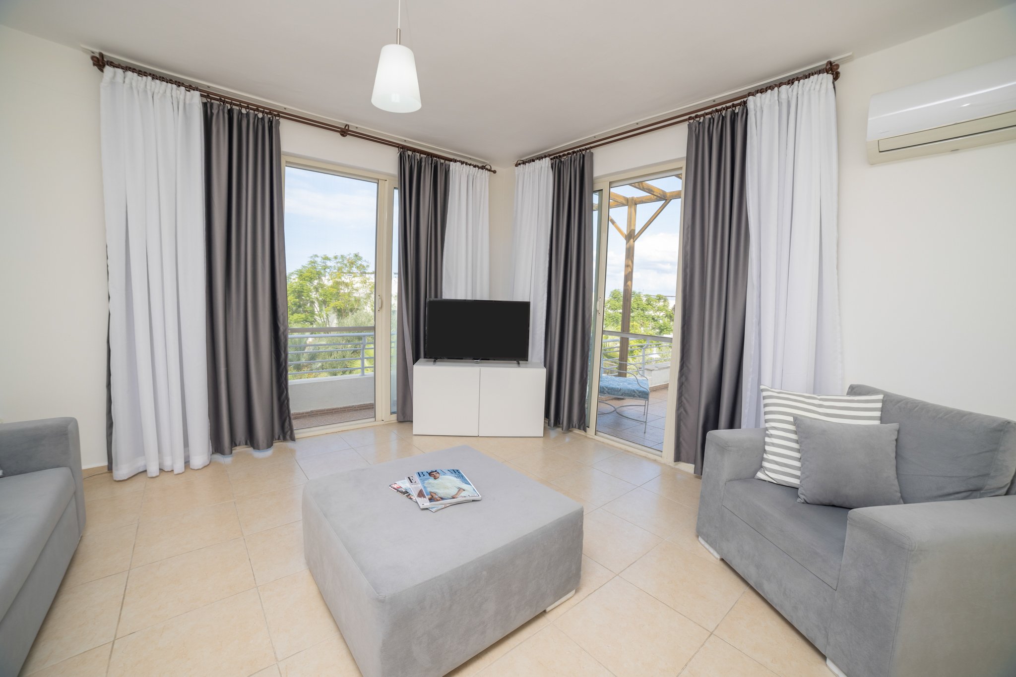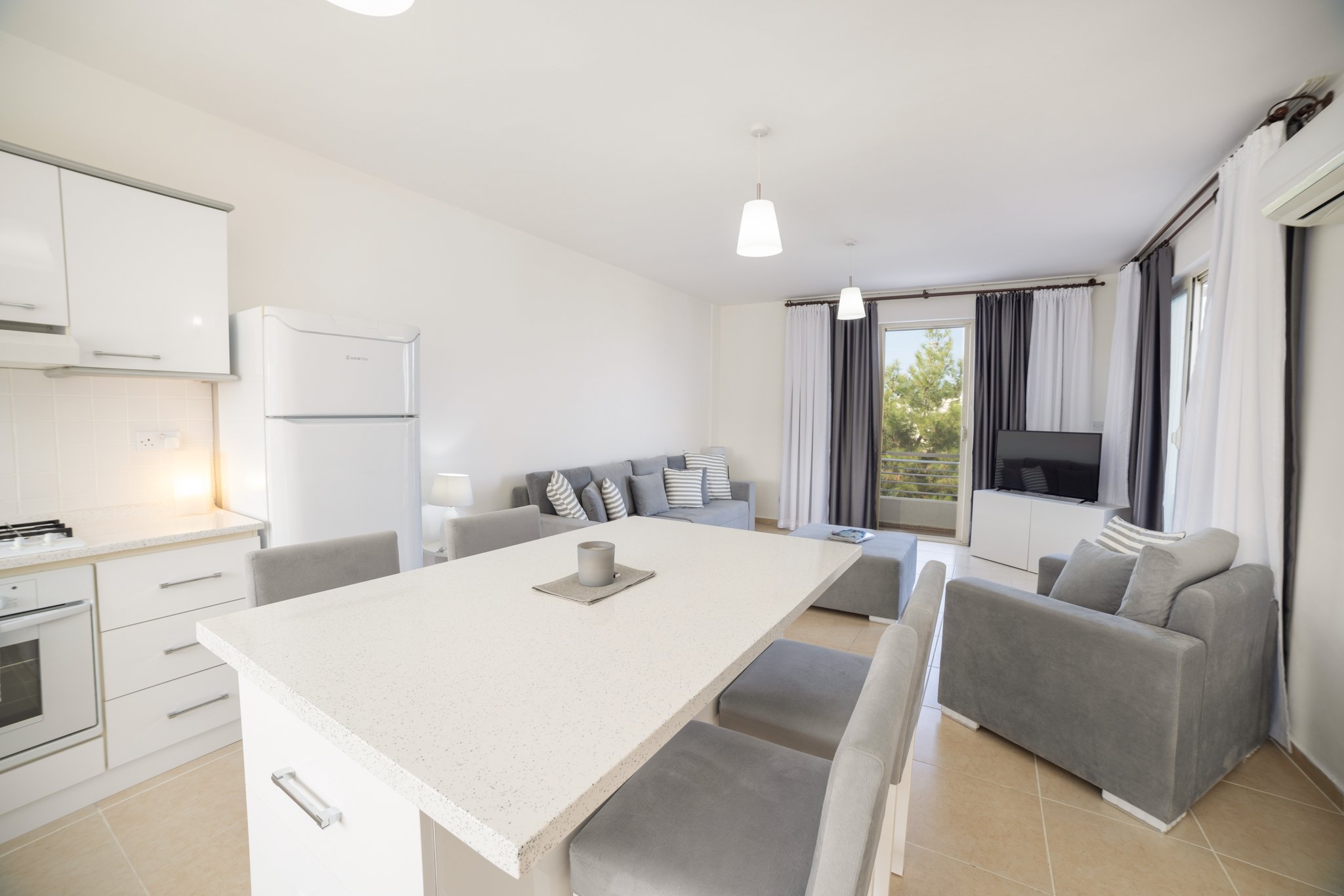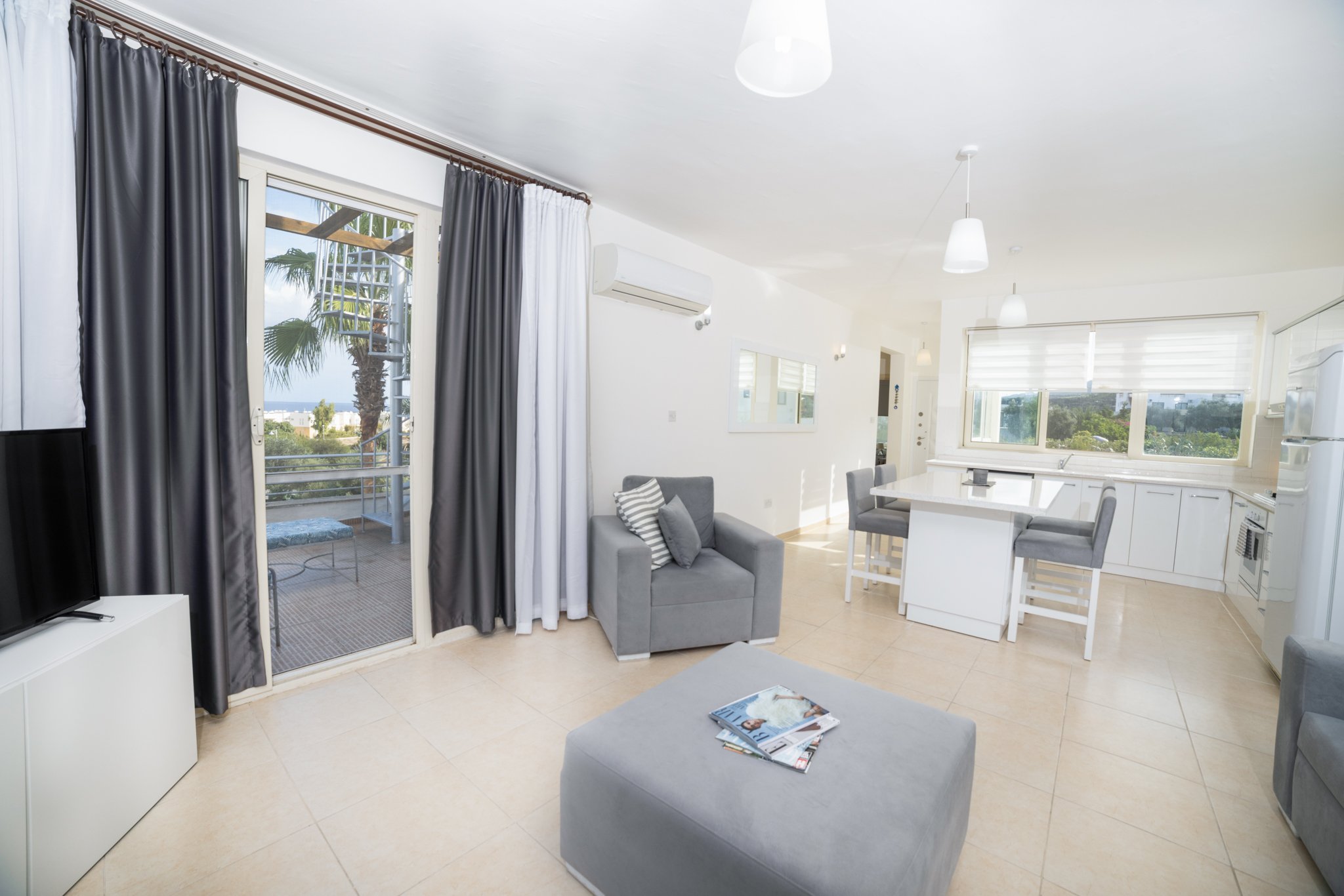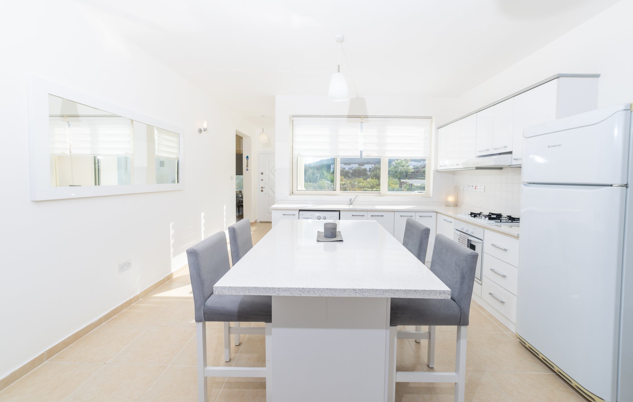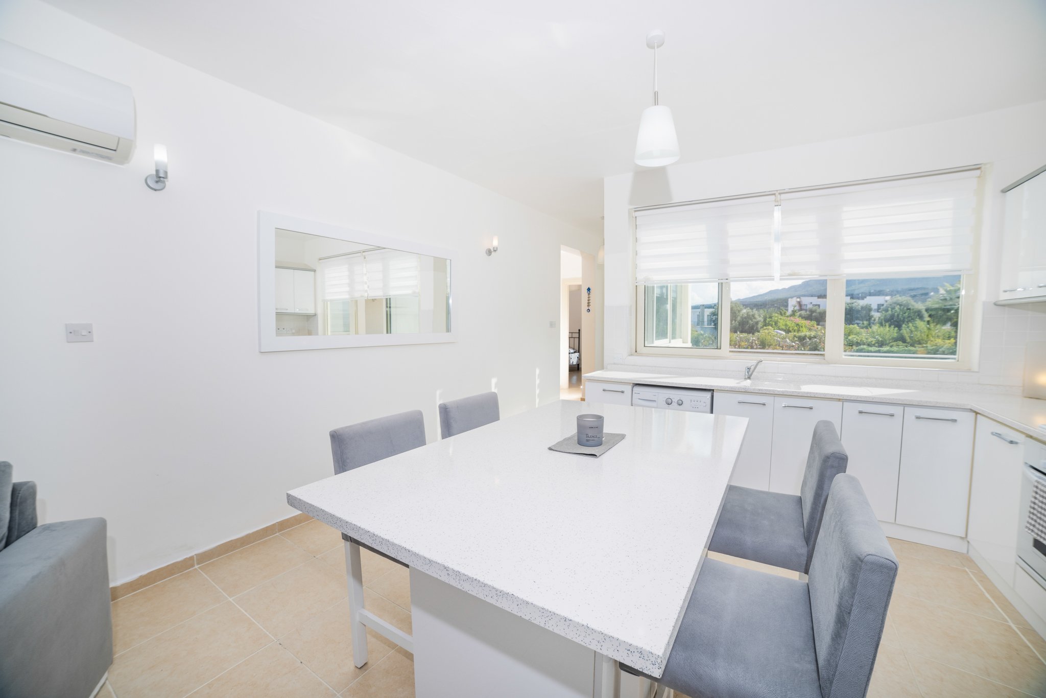 Acorn Cyprus is delighted to present a new listing nestled in the heart of Turtle Bay Village, this exquisite 2-bedroom penthouse offers a lifestyle of serenity and luxury. As you step inside, the large terrace unveils a breathtaking panorama of the Five Fingers Mountains and a tranquil sea view, a captivating backdrop to your daily life. The living room and kitchen seamlessly merge into a harmonious living space. The kitchen boasts a brand-new design with an inviting island, creating the perfect setting for memorable dinner times and entertaining guests. The entire apartment is generously airy, promoting a sense of openness and tranquility. The interior decoration, adorned in lovely white and grey hues, adds a warm and homely atmosphere, making it a true haven for relaxation. The main bedroom is a retreat in itself, featuring an ensuite bathroom for added convenience and a fitted wardrobe for your storage needs. The second bedroom is ideal for guests or can serve as your own private retreat. The guest bathroom, complete with a soothing bath, is another touch of luxury. In addition to the spacious terrace for unwinding and reading, the rooftop provides an ideal spot for basking in the Mediterranean sun. The location is a dream come true for those seeking both leisure and convenience. Turtle Bay Village offers a host of amenities, including seven refreshing pools, a charming restaurant, mini-golf for family fun, and basketball and tennis courts for sports enthusiasts. Stroll through the lovely garden for moments of tranquility. Moreover, you’re only a 5-minute drive away from the renowned Korineum Golf Course, a golfer’s paradise, and within walking distance of the inviting sea. This property truly combines the best of both worlds, offering a perfect blend of natural beauty and modern comforts. It’s a unique opportunity to live in a place where every day feels like a holiday.